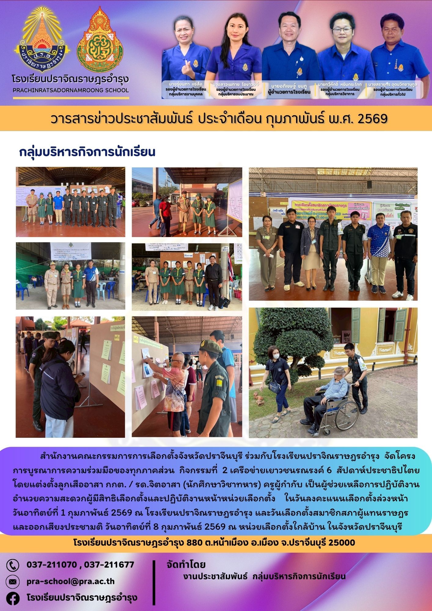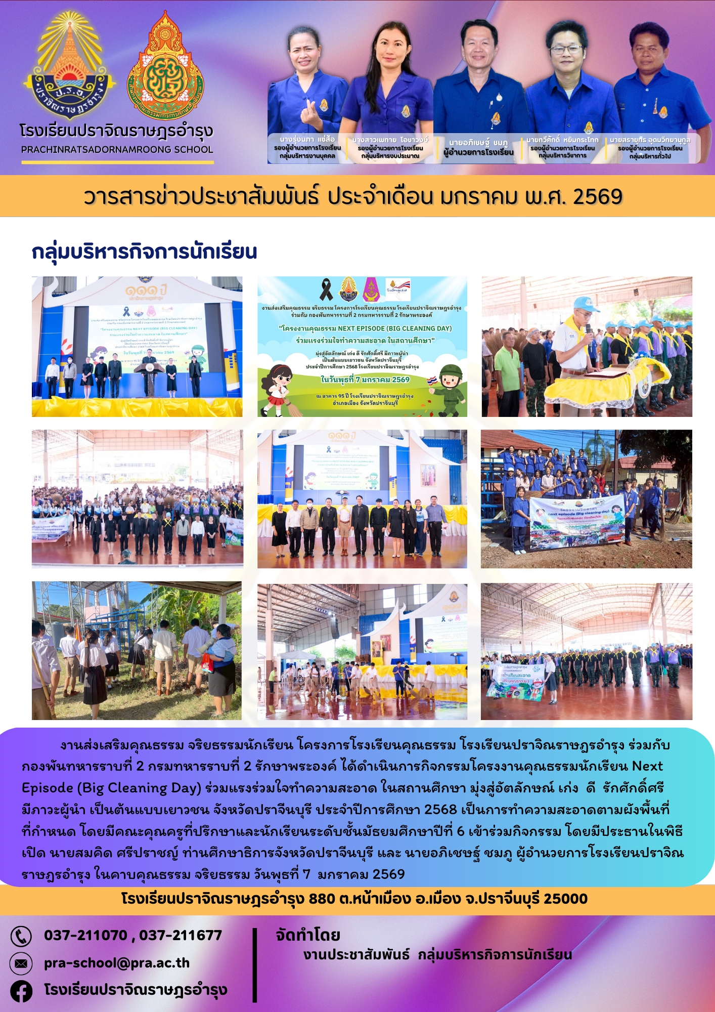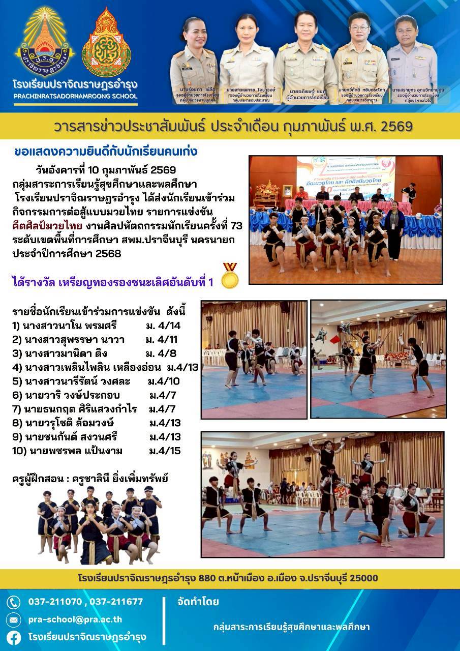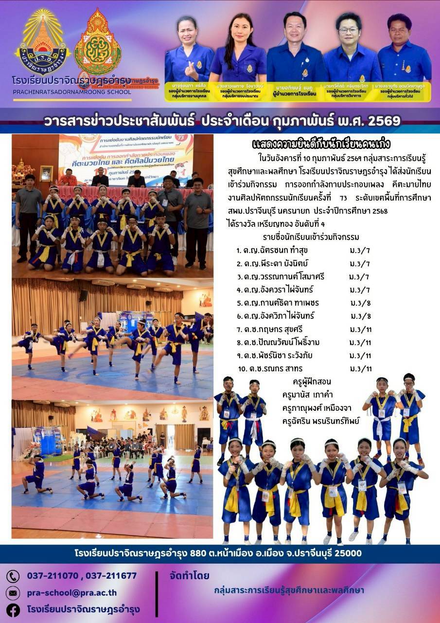 โรงเรียนปราจิณราษฎรอำรุง เลขที่ 880 ถนนปราจีนอนุสรณ์ ตำบลหน้าเมือง อำเภอเมือง จังหวัดปราจีนบุรี 25000 โทรศัพท์ : 037-211070 อีเมลล์ : saraban@pra.ac.th