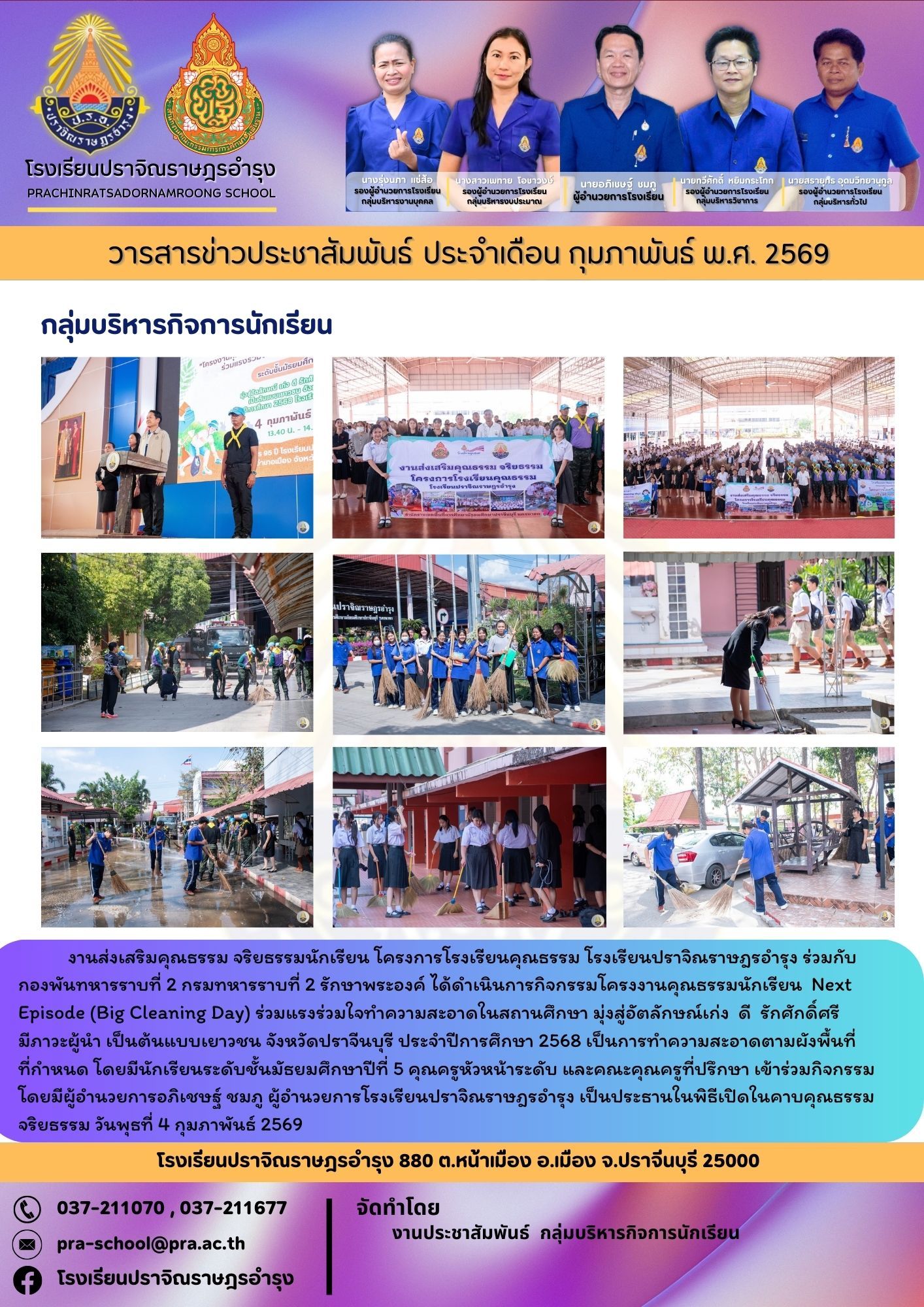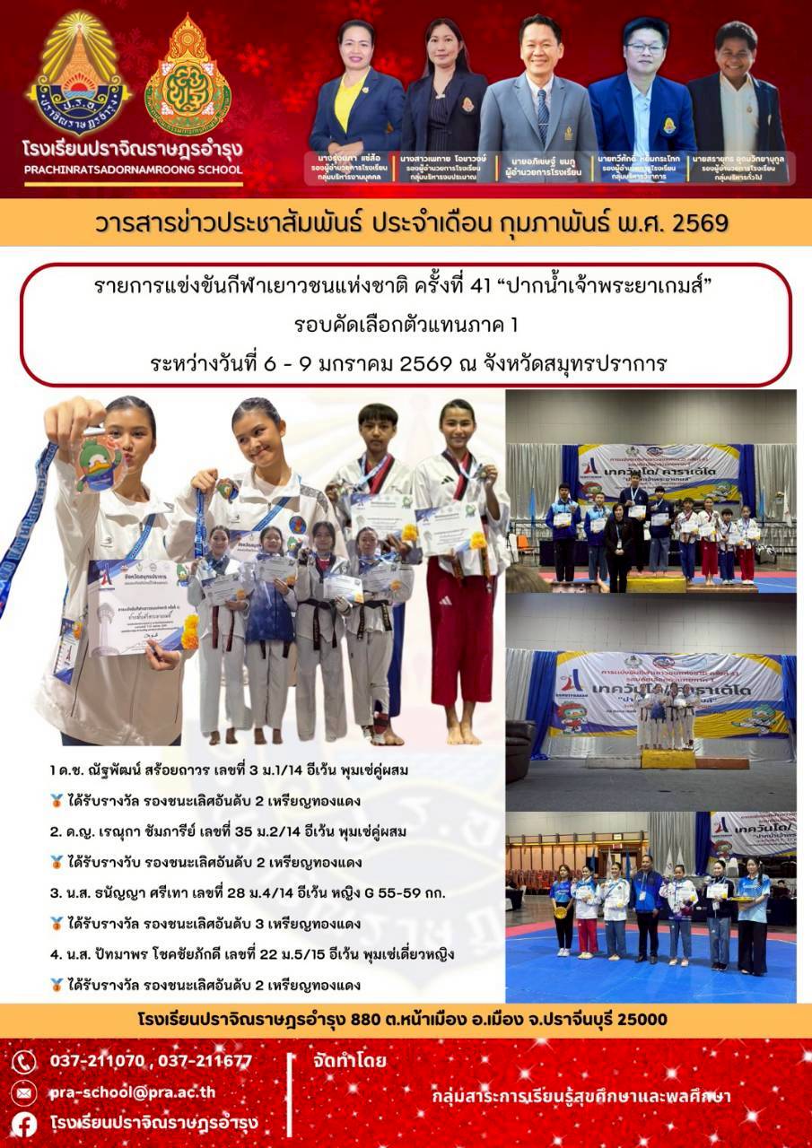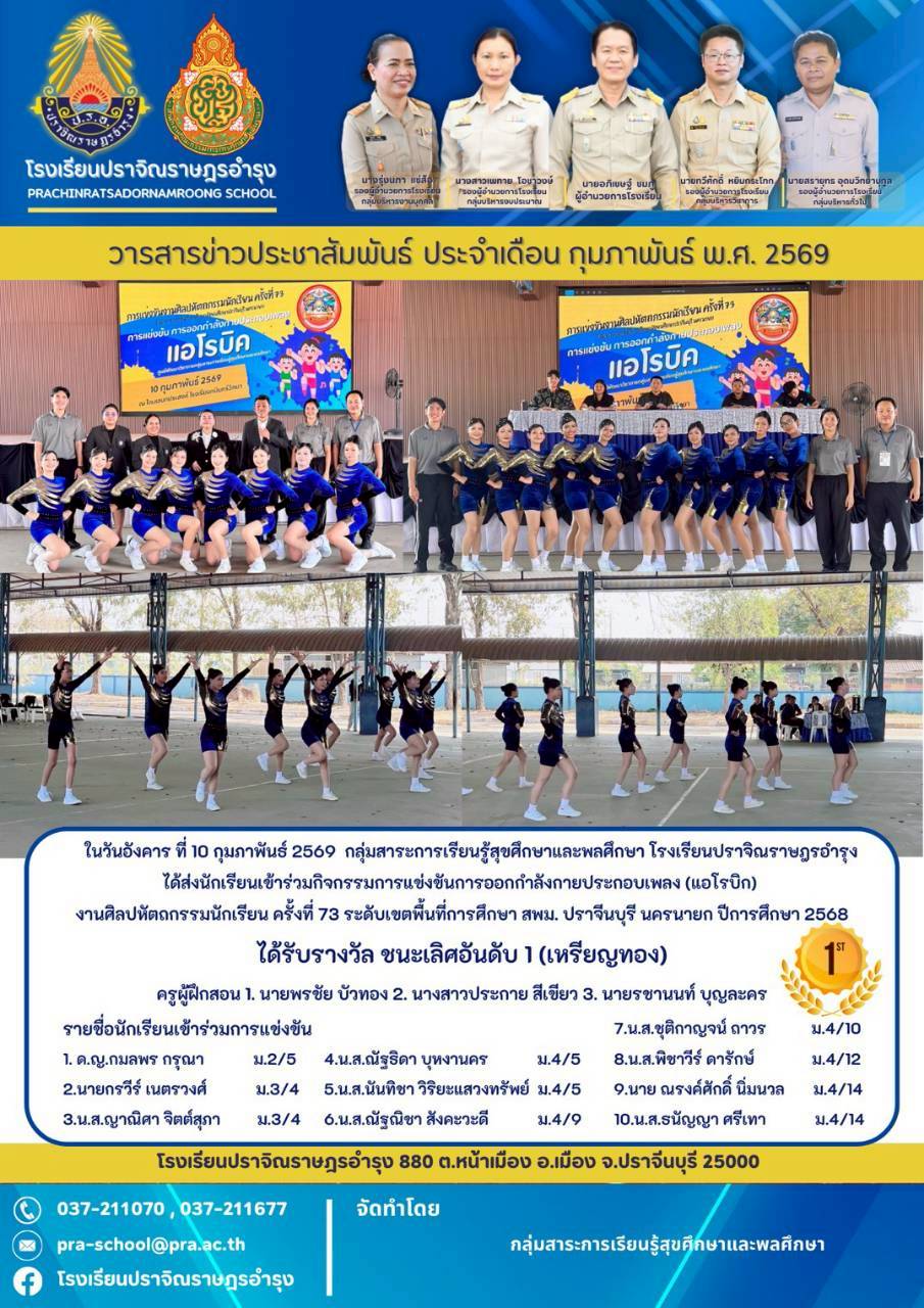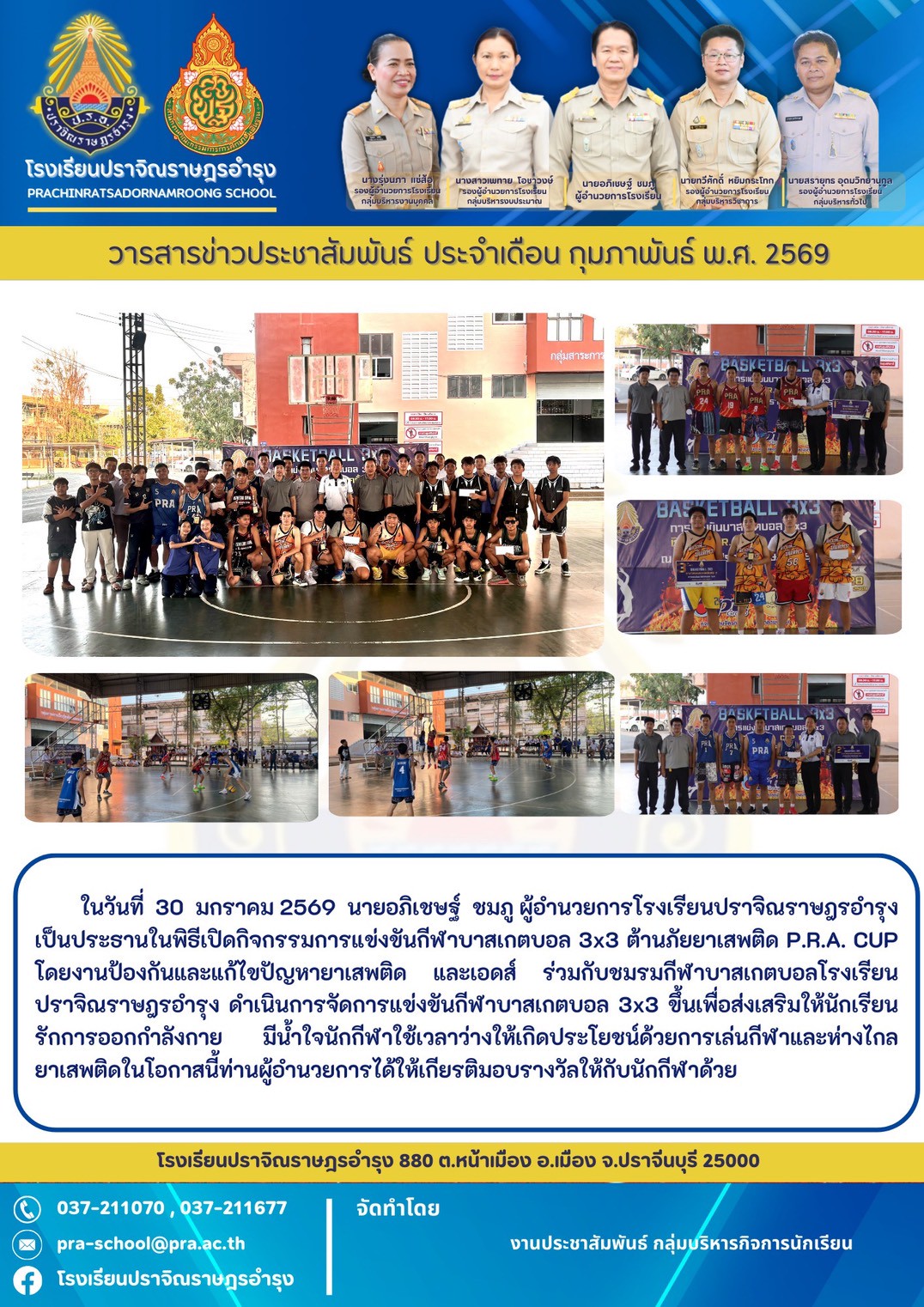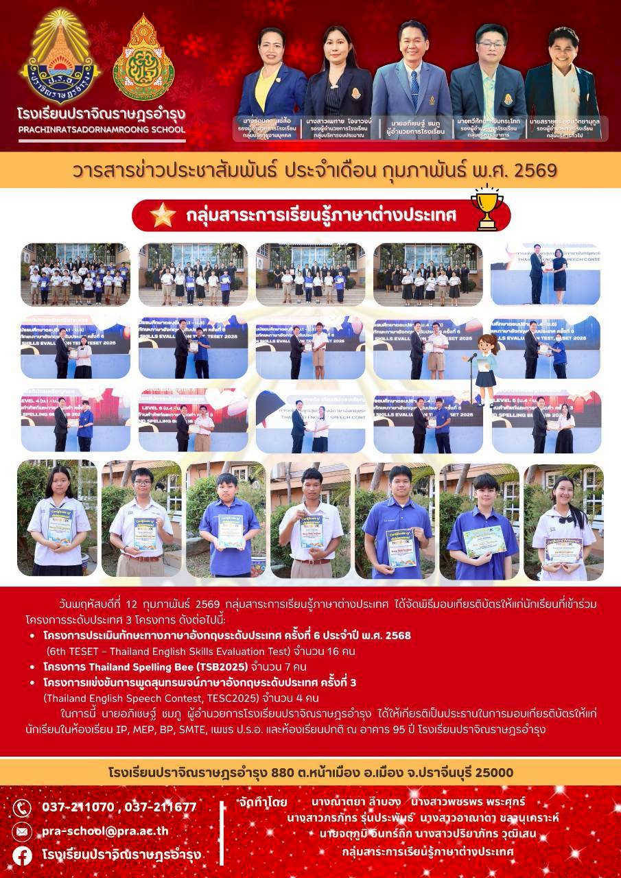 โรงเรียนปราจิณราษฎรอำรุง เลขที่ 880 ถนนปราจีนอนุสรณ์ ตำบลหน้าเมือง อำเภอเมือง จังหวัดปราจีนบุรี 25000 โทรศัพท์ : 037-211070 อีเมลล์ : saraban@pra.ac.th
