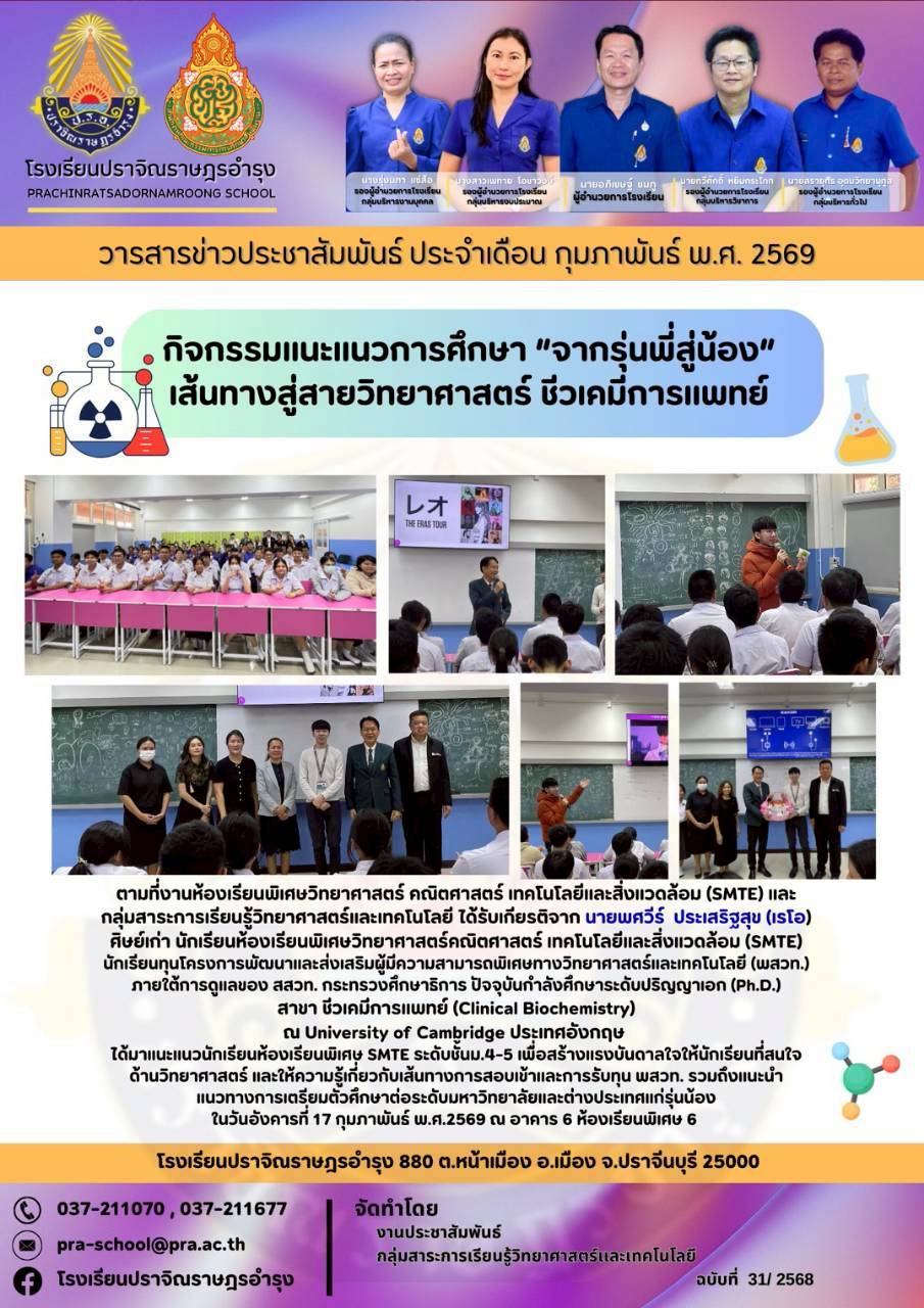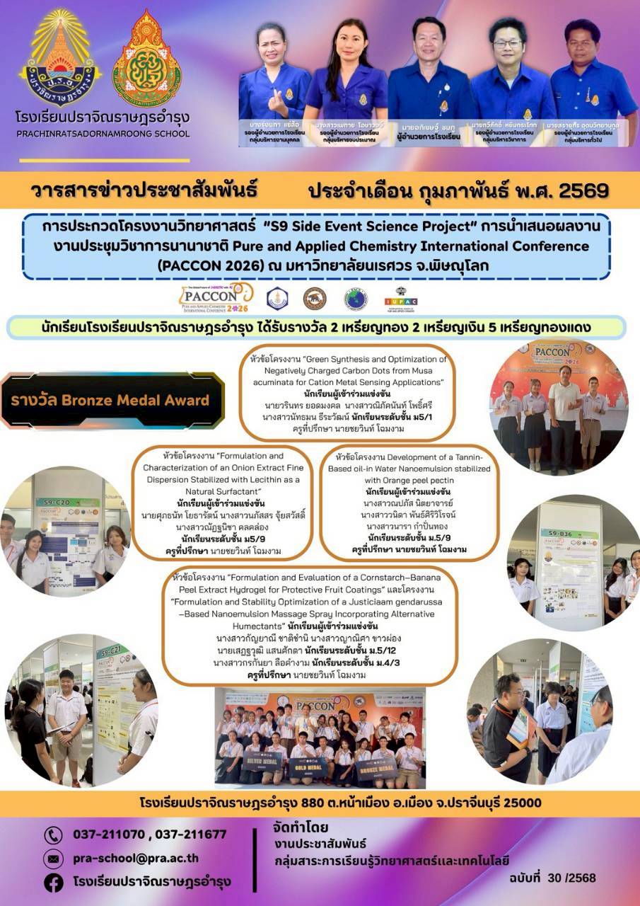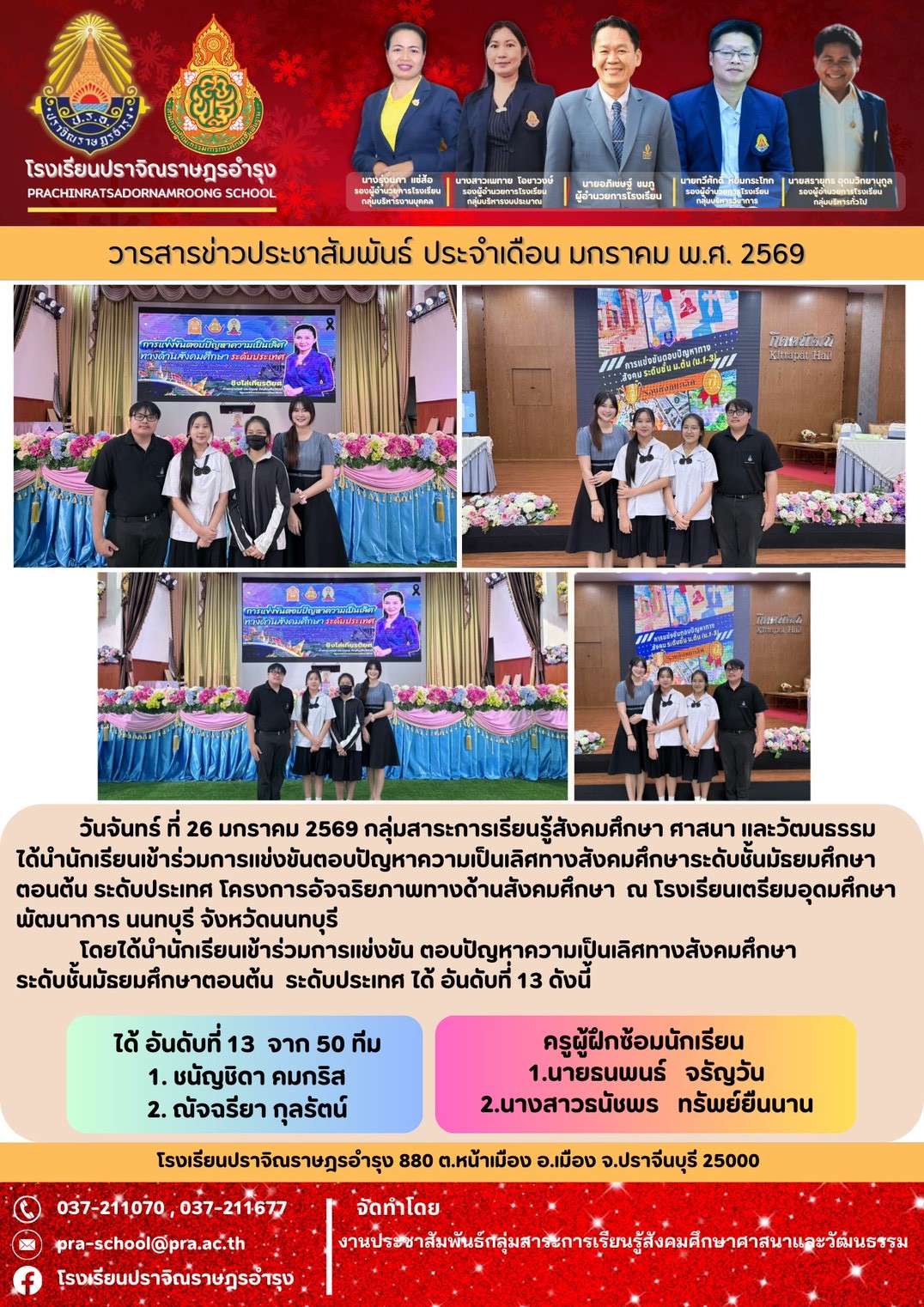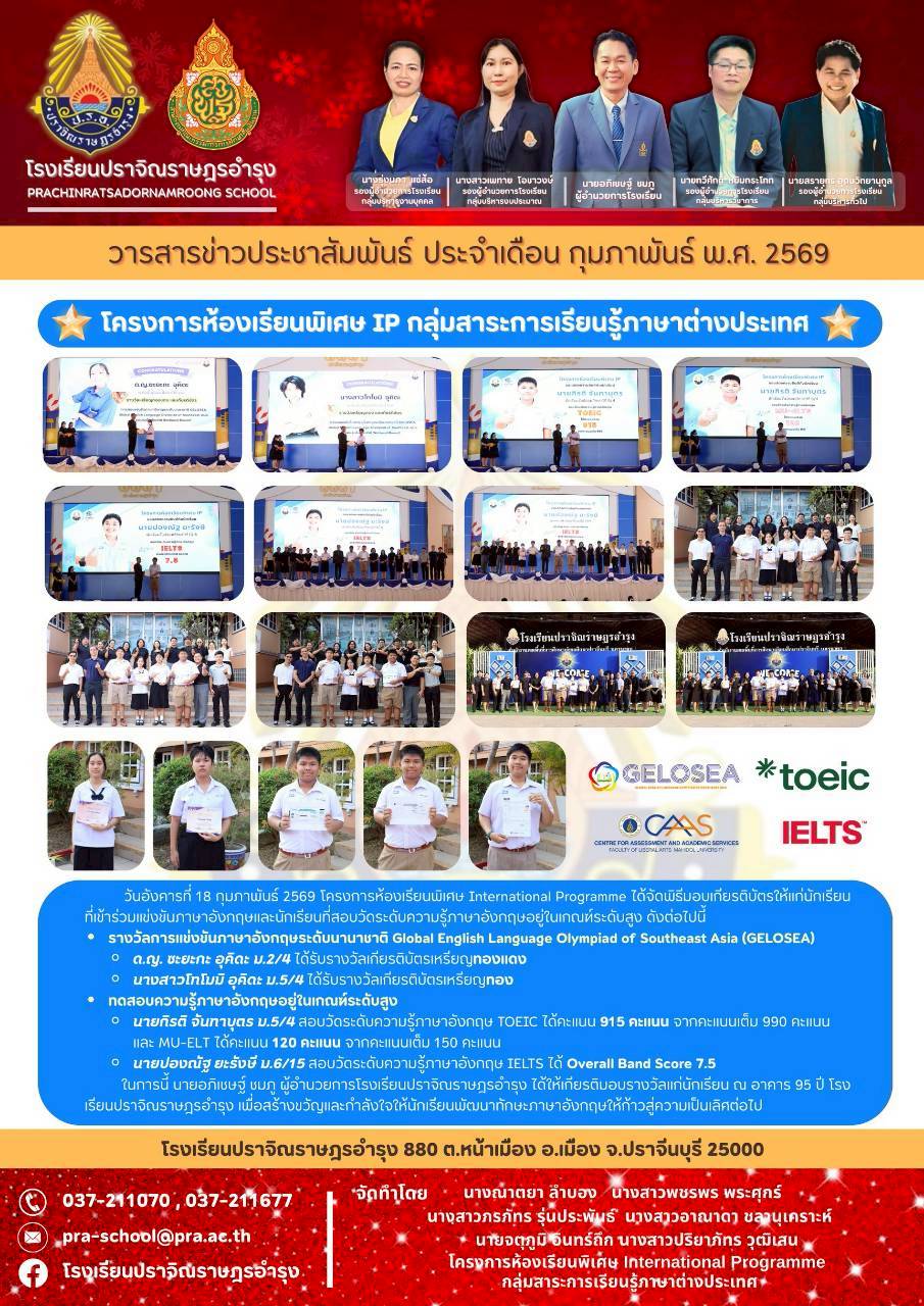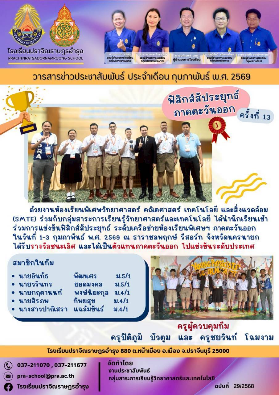 โรงเรียนปราจิณราษฎรอำรุง เลขที่ 880 ถนนปราจีนอนุสรณ์ ตำบลหน้าเมือง อำเภอเมือง จังหวัดปราจีนบุรี 25000 โทรศัพท์ : 037-211070 อีเมลล์ : saraban@pra.ac.th